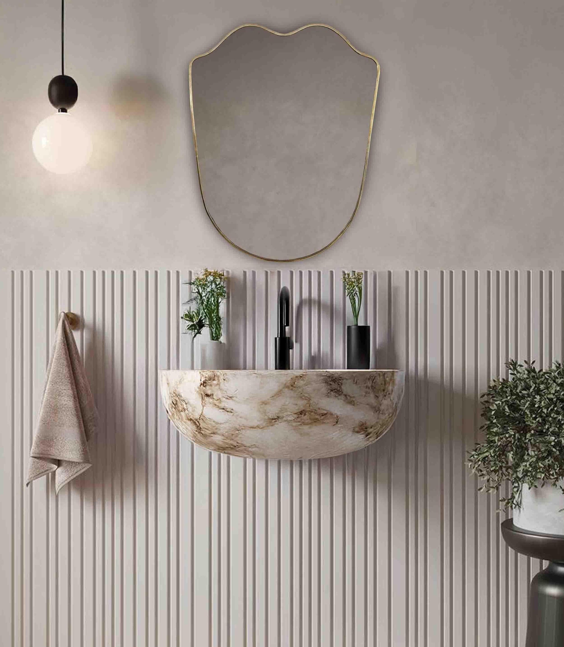 Italian Style Asymmetrical Brass Bathroom Mirror – Handmade Irregular Gold Wall Mirror